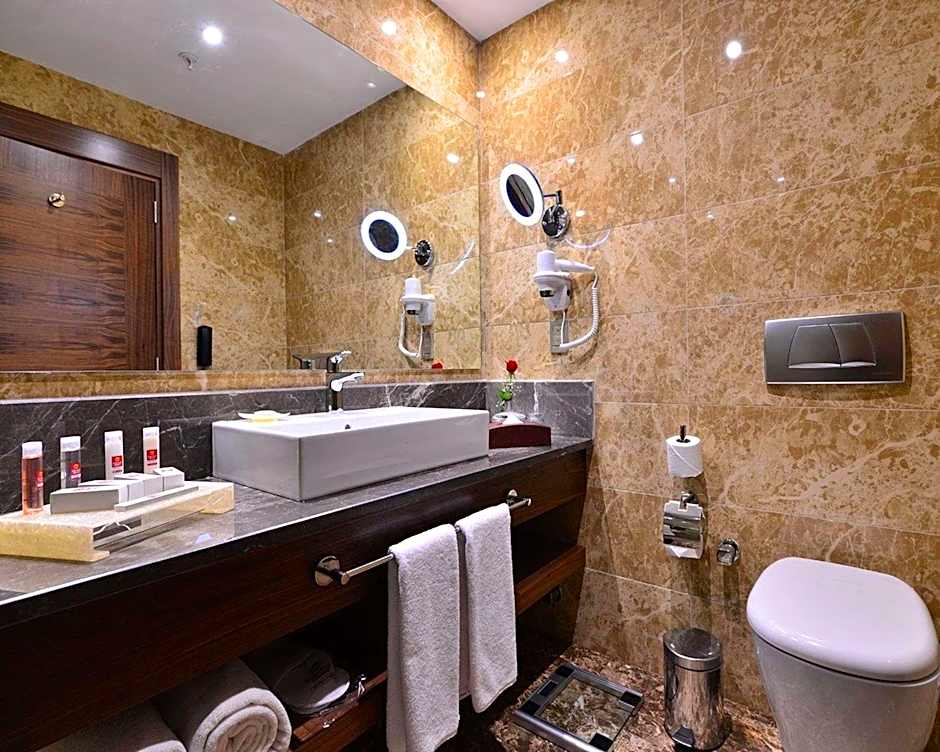 The spacious suite features 1 bedroom and 1 bathroom with a bath and free toiletries. The air-conditioned suite offers a flat-screen TV with satellite channels, soundproof walls, a mini-bar, a tea and coffee maker as well as city views. The unit offers 2 beds.